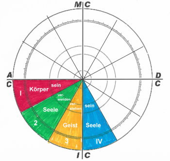 Dieser Teil der Seele mit dem Begriff "sein" ist dem IV. Haus, also dem 1. Haus im II. Quadranten, also der unbewussten Innenwelt zugeordnet.