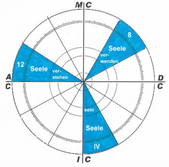 Dieser Teil der Seele mit dem Begriff "sein" ist dem IV. Haus, also dem 1. Haus im II. Quadranten, also der unbewussten Innenwelt zugeordnet.